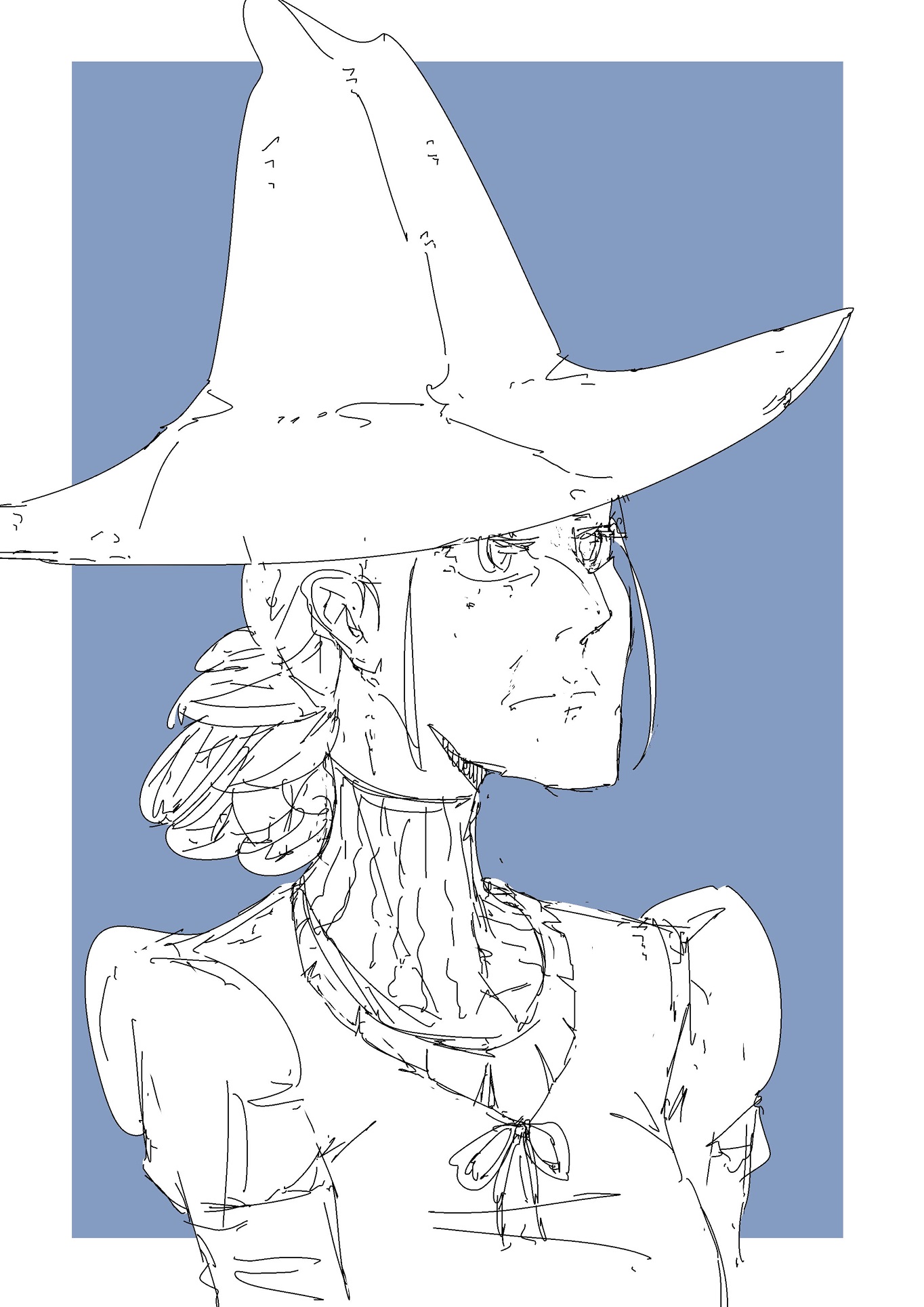 She is a tall, thin, older, stern-faced woman with a black dress and worn pointed hat. She pays attention to her posture and keeps a straight back.[1]