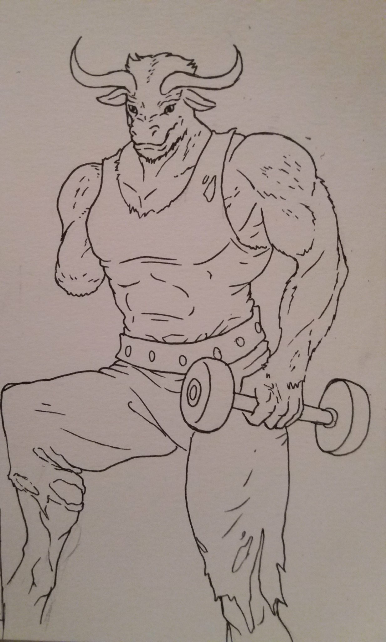 He is estimated to be about six foot seven, without even counting the horns,[1] making him fairly tall for a Minotaur[2] and weights 300 pounds.[3]