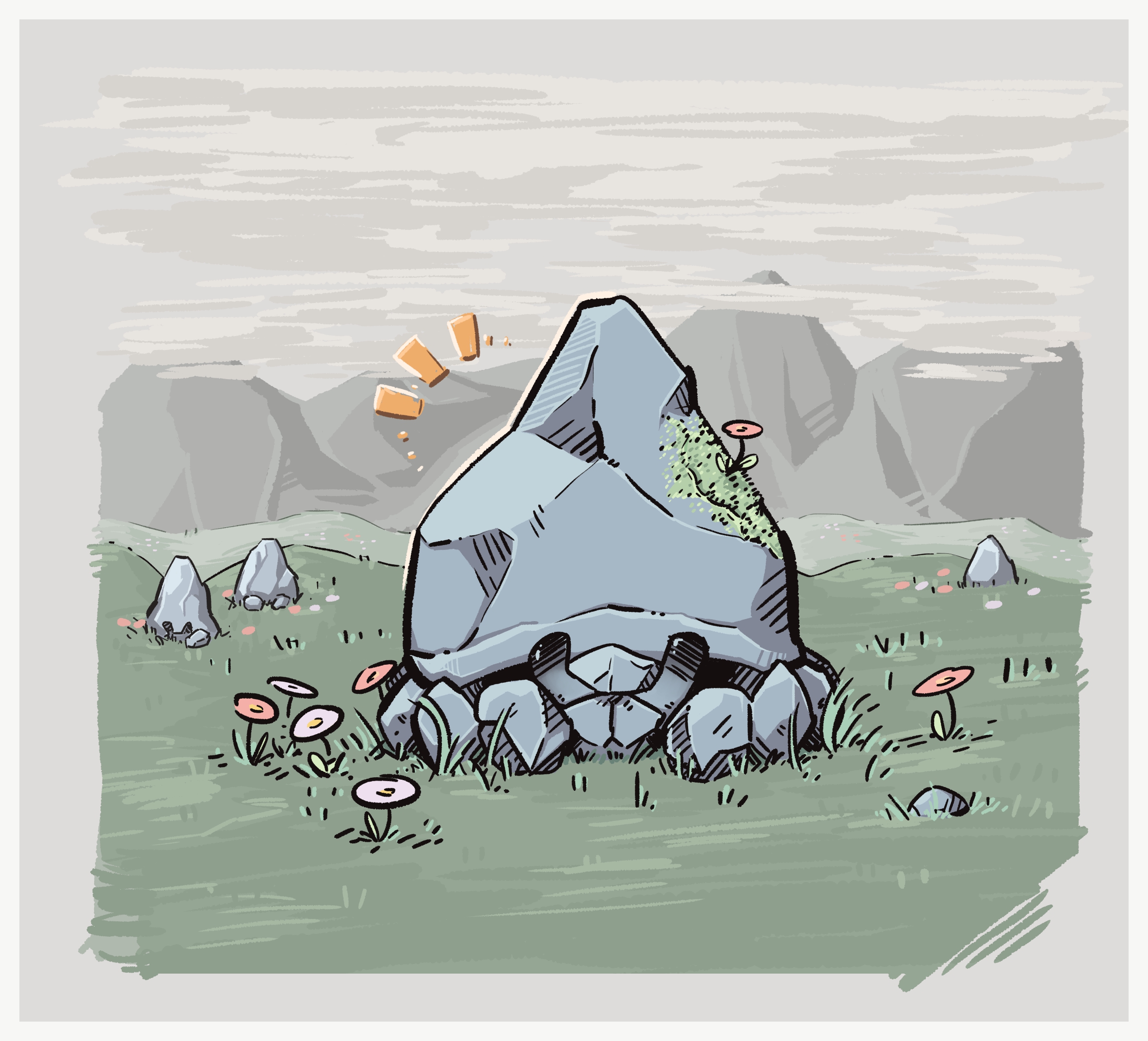 In the distance, she noticed what looked like buildings, giving her hope that she wasn't alone. She also spotted a small collection of peculiar trees, which appeared to have fruit. Driven by hunger, she walked toward the trees, barely escaping an encounter with a giant crab hiding beneath a tall rock.