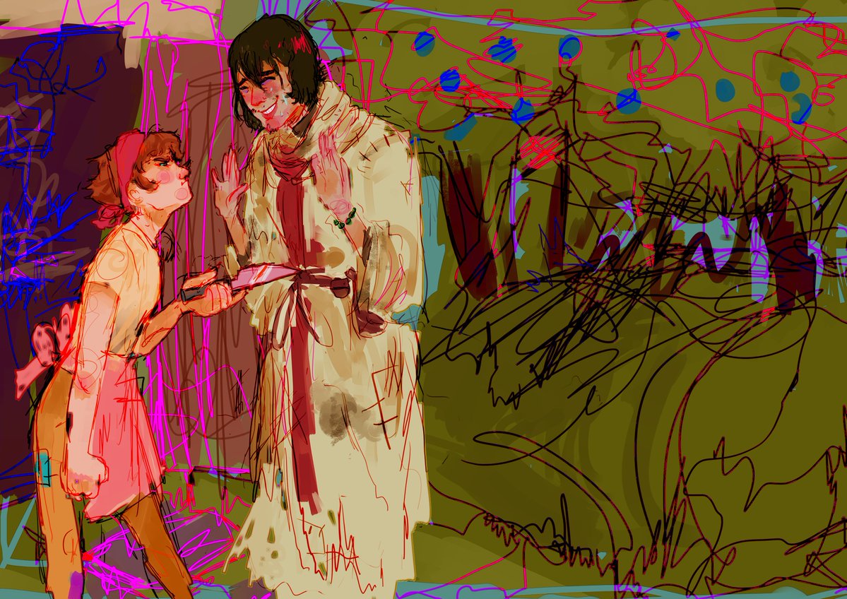The thrown cooking pot knocks the creature out, making the illusion disappear and reveal the mage underneath. Erin wakes him up with a bucket of water and interrogates him. He tries to threaten her again with invisibility, but Erin hits him with a pan again. He gives her some coins to appease her, but when he tries to walk out, she invites him to eat in the inn.