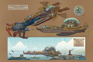 Drowned ships tend to be unusually tall, eschewing the aerodynamics used by the vessels of other species for something that could maneuver in three dimensions. They often lack sails, and are sometimes designed to engage foes from above or bellow.
