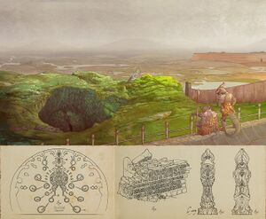 The dungeon has well rooms from which the water the Dungeon Monsters drink from comes, and the Floodplains' annual flooding drains into. It is over eight thousand feet deep, descending into depths only Gnomes and Dead Gods have been.[1]