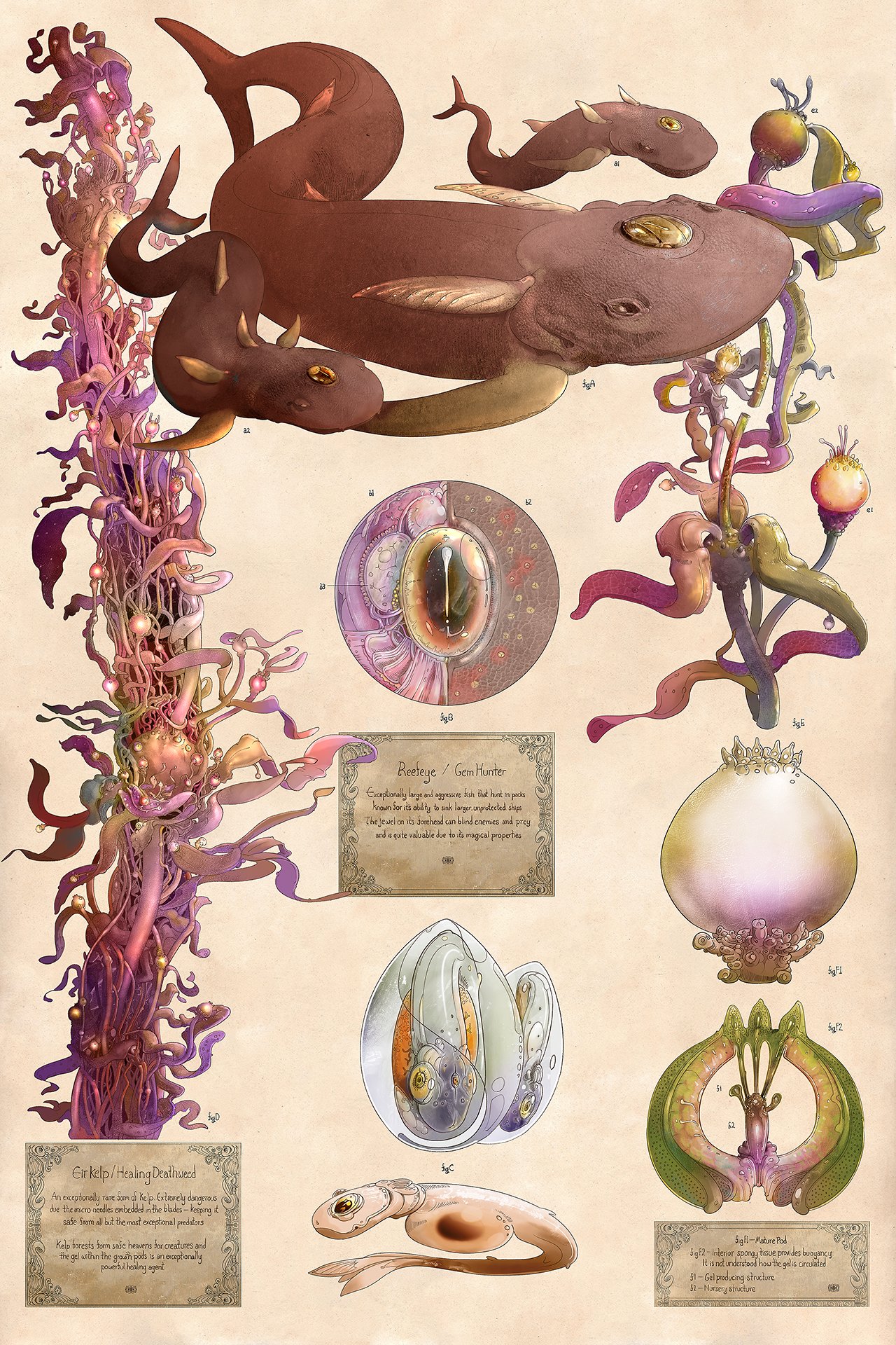 Eir Kelp is extremely dangerous due to the microscopic needles embedded in their blades, which makes it safe from all but the most exceptional predators. Eir Kelp forests are safe havens for various organisms, ranging from tiny minnows to fish as long as Solca's arm, although rarely larger.[1]