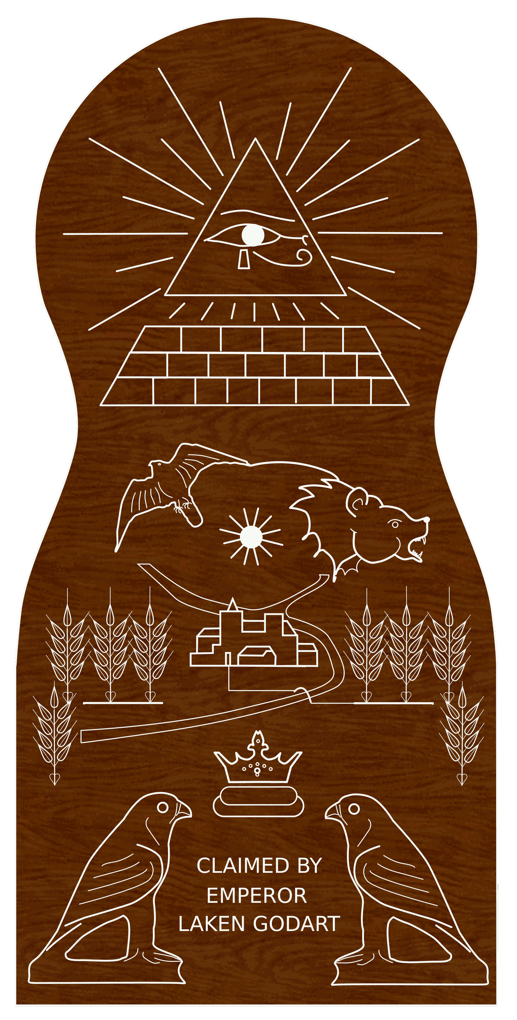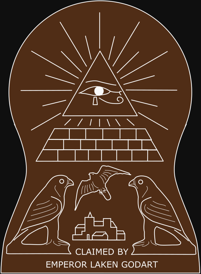 a hawk. And a village, maybe? And then you write on it sideways—‘Claimed by Emperor Laken Godart’.
