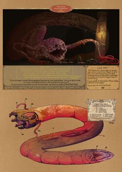 They look like massive red worms, roughly thirty feet long, with two long tentacles/feelers that can remove skin upon contact.