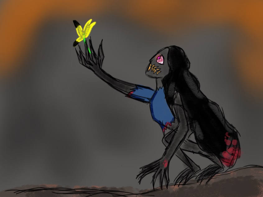 After having gained a [Horror Rank] she stopped being a human and became something close to a ghoul, though a "living" one with self-consciousness. She started to walk on all fours, her back was hunched, her nails became unnaturally long, making them resemble claws, and her teeth turned very sharp.