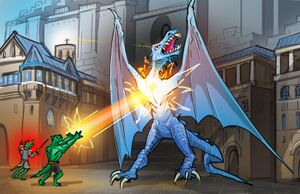 The Lightning Dragon and Greater Wyvern fought each other for an hour. Rafaema decided to end the battle by accepting her defeat, giving the Wyvern Lord her possessions as an act of submission.[8]