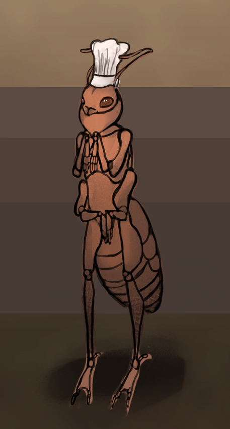 After he gains his new class he begins to work as the Queen of the Free Antinium's personal [Cook].