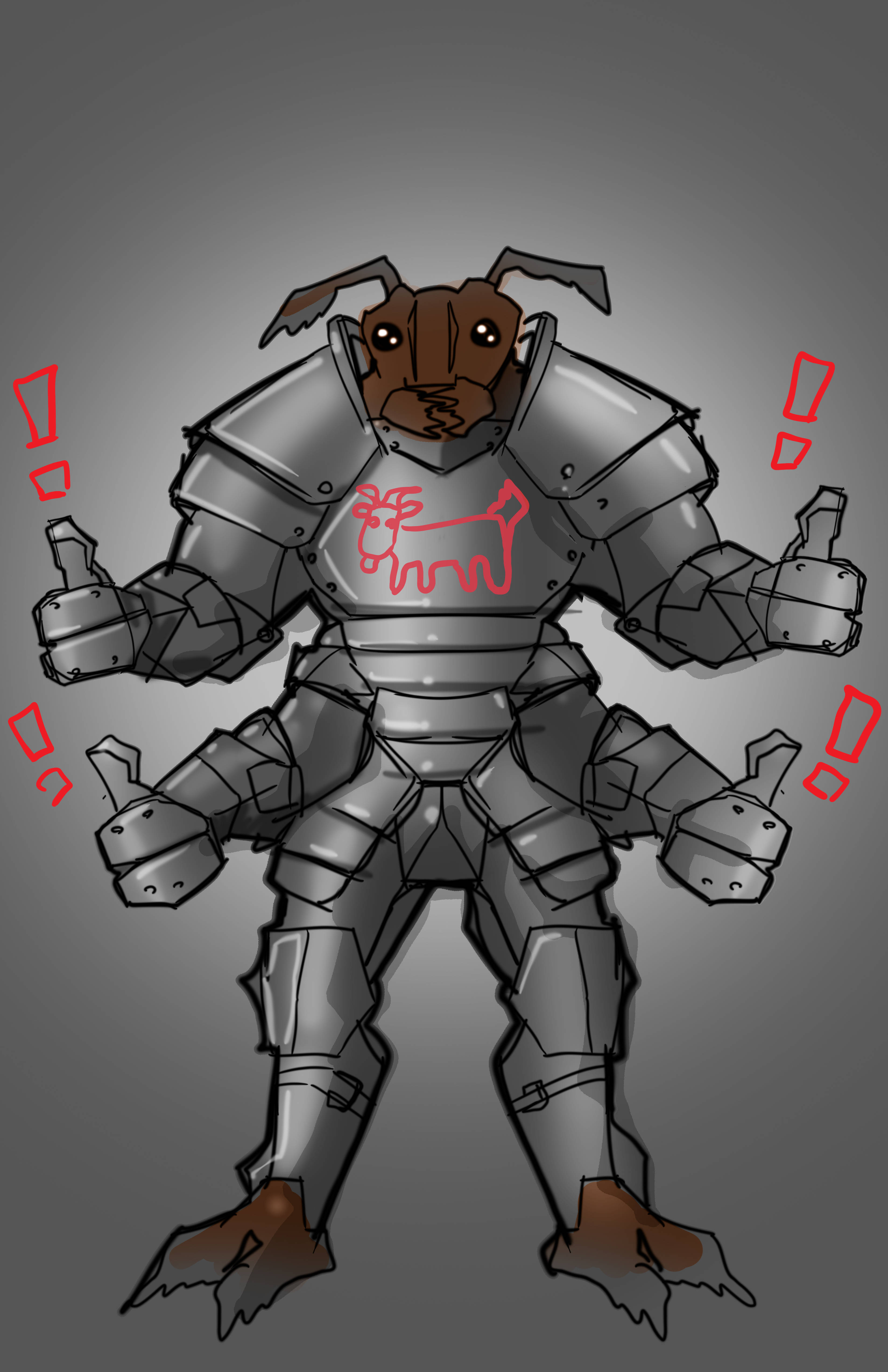 Standard Antinium Soldiers appearance, but with a goat painted on his chest.[1]