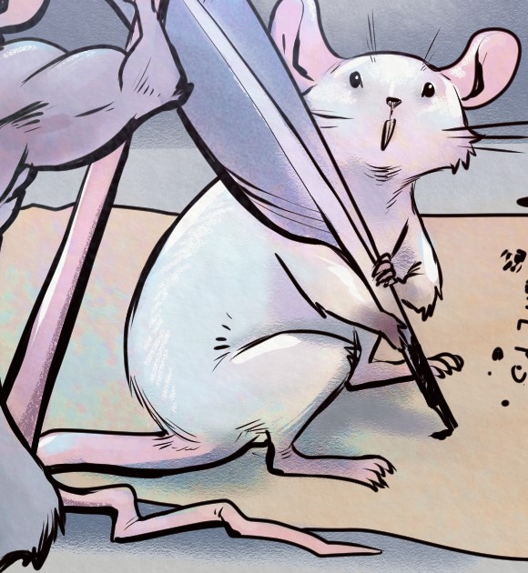 He's a white-furred little rat.