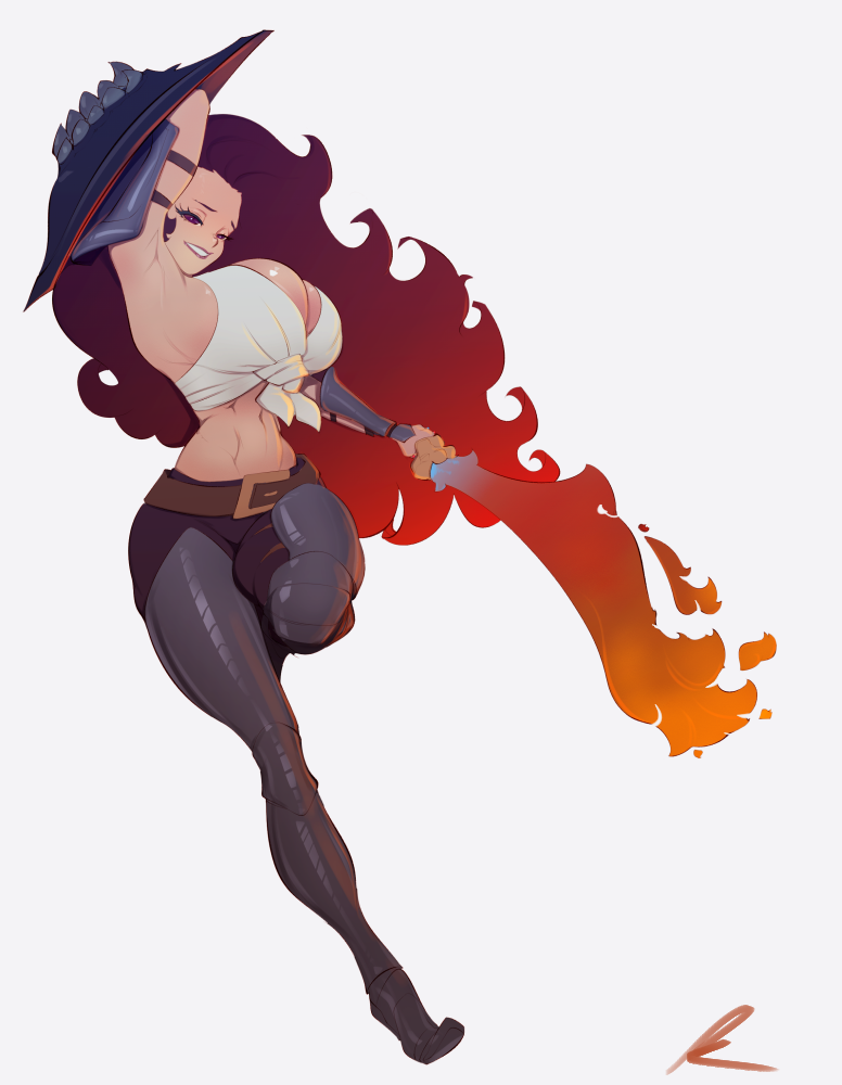 With the help of her magical items, Mars is capable of casting an illusion over her body, resulting in a drastic change of appearance. She has long, bouncing red curls of hair, very big breasts, a slender frame and unscarred skin. She carries a massive round shield, which is strapped to her back, and a sword at her hip.[1]