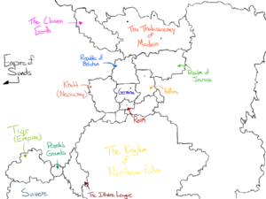 Medain is made up of four kingdoms. The three vassal kingdoms still have their [Kings], though they are subservient to the [High King].[2]