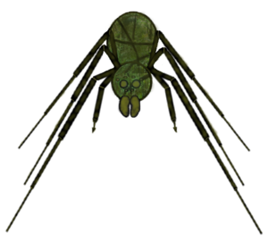 These spiders have a small body and long, tall legs. These legs have the feature of having variable lengths like a telescope. They are fast and dangerous hunters and can impale their prey with their sturdy tall legs. Larger groups of Spear Spiders can eradicate entire villages.[1] They are also more aggressive than Shield Spiders.[2]