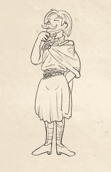 - (To himself) “Songs. Songs. Dead gods dammit, we can’t wait for someone to write a musical about—about the Meeting of Tribes. We don’t need to reenact war and tragedy. Give me something purely fun! Give me something joyous to make the people sit up and laugh!”