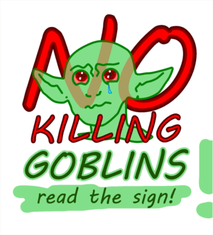 The Inn has the rule of 'No Killing Goblins.'[12] As long as the Goblins inside or around the inn are not attacking anyone, stealing or being extremely rude, Erin won’t let anyone harm them. Currently this rule is written on a sign right in front of the inn, by the door,[13] as well as on a dozen posters all around the inn.[14]